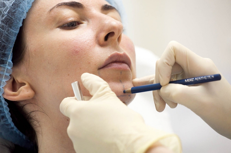 Врач определяет зоны введения и наносит разметку косметическим маркером