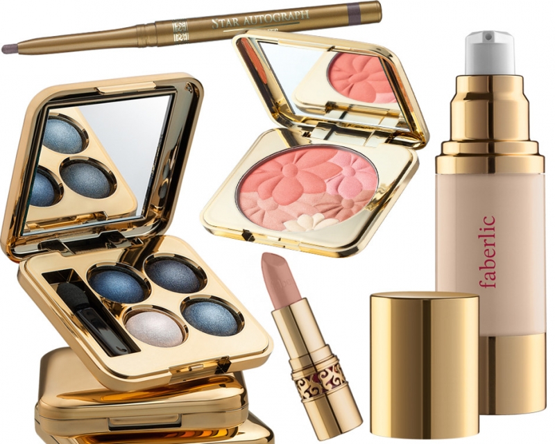 Палитра теней "Ослепительный взгляд", FaberlicКарандаш для век "Звездный автограф", FaberlicРумяна Walk of Fame, FaberlicПомада с сывороткой "Роскошный поцелуй", FaberlicТональный крем-сыворотка "Сияние молодости", Faberlic