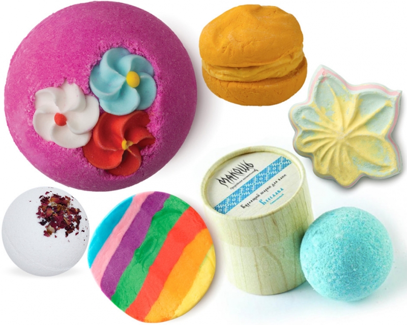 Бомбы для ванны «Пинк» и «Осенний лист», пенорони «Юзу и какао», фан «Радуга», все Lush; бомбы для ванны «Роза», Mi&Ko и «Всеслава», «Макошь».