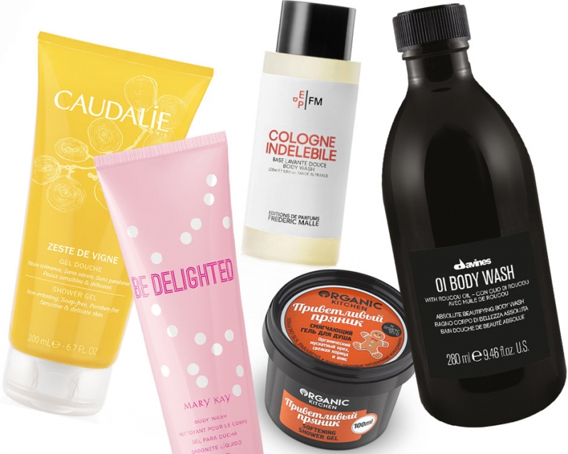 Гель для душа: Zeste de Vigne, Caudalie; Be Delighted, Mary Kay; Cologne Indelible, Frederic Malle; «Приветливый пряник», Organic Kitchen; Oil Body Wash, Davines.