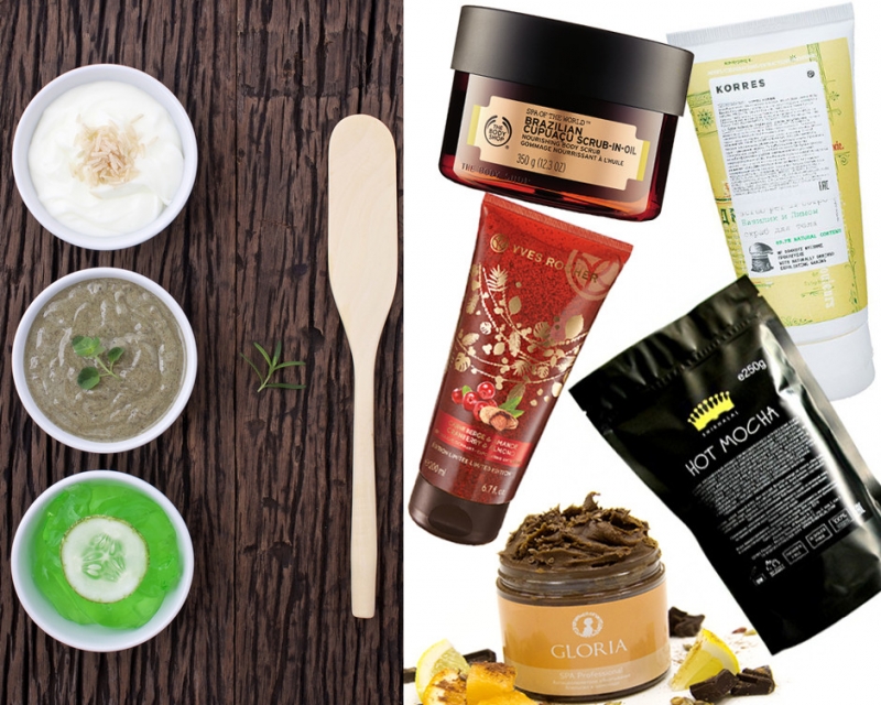 Скрабы для тела: Brazilian Cupuacu Scrub-in-Oil, The Body Shop; Cranberry & Almond, Yves Rocher; «Базилик и лимон», Korres; Hot Mocha, Shik Halal. Антицеллюлитное обертывание «Апельсин в шоколаде», Gloria.