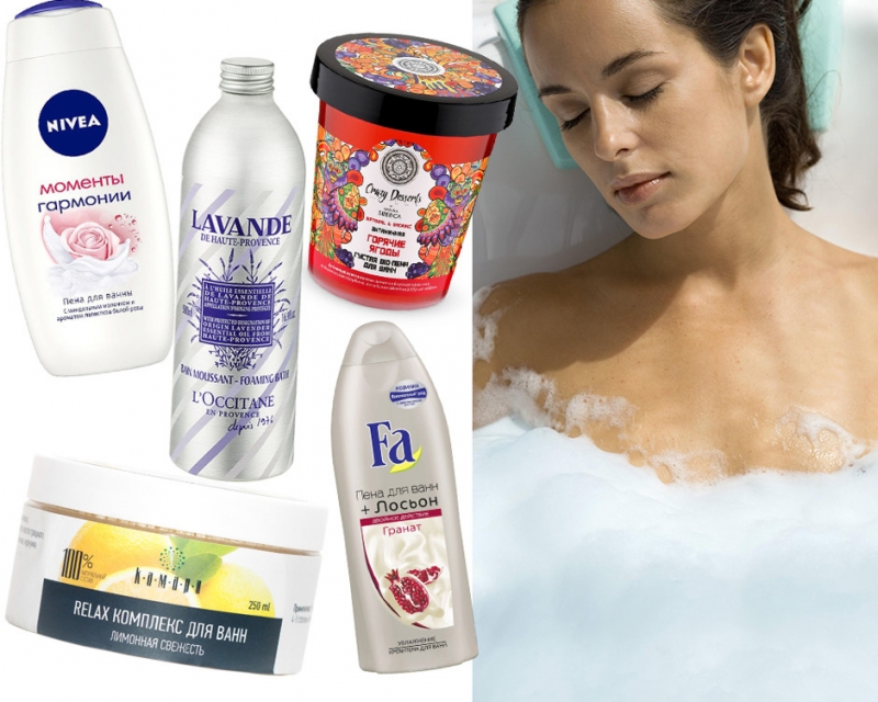 Пена для ванны: «Моменты гармонии», Nivea; Lavande, L'Occitane; «Горячие ягоды», Natura Siberica; «Гранат», Fa. Релакс-комплекс для ванн «Лимонная свежесть», «Камали».