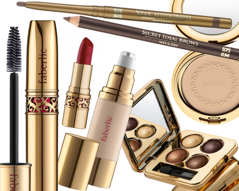 Тушь для ресниц "Ваш Оскар", FaberlicПомада с сывороткой "Роскошный поцелуй", FaberlicКарандаш для век "Звездный автограф", FaberlicКарандаш для бровей "Секрет идеального штриха", FaberlicПудра "Звездный выход", FaberlicПалитра теней "Ослепительный взгляд", FaberlicТональный крем "Сияние молодости", Faberlic