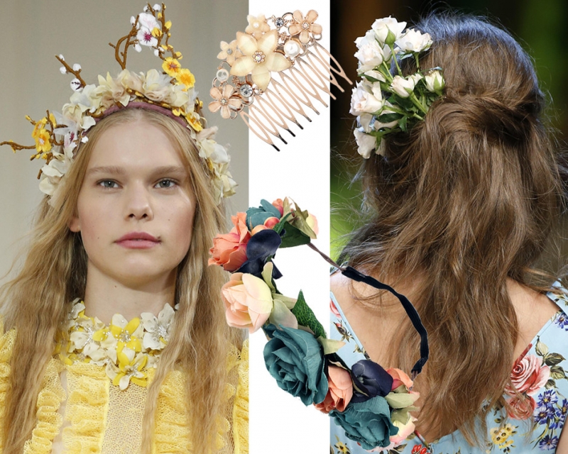 Показы: Bora Aksu и Dolce & Gabbana, SS 2017. Ободок и гребень для волос, все Clair.