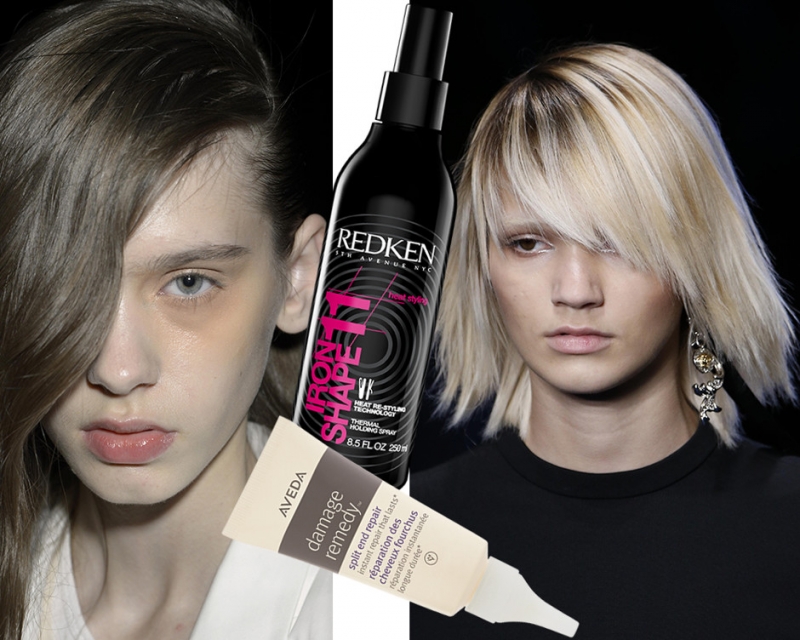 Показы: Versace, Masha Ma, SS 2017. Термозащитный спрей Iron Shape 11, Redken; восстанавливающее средство для секущихся концов волос Damage Remedy, Aveda.