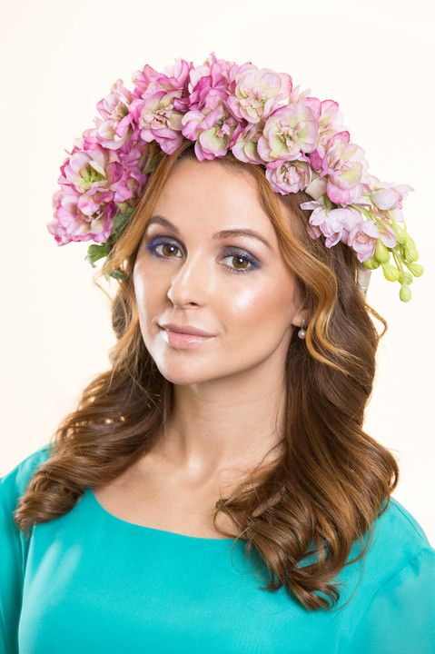 Прическа на выпускной. Накрутите волосы и заплетите косу на макушке, оставив нижнюю часть нетронутой. А еще лучше — наденьте венок из живых или искусственных цветов.