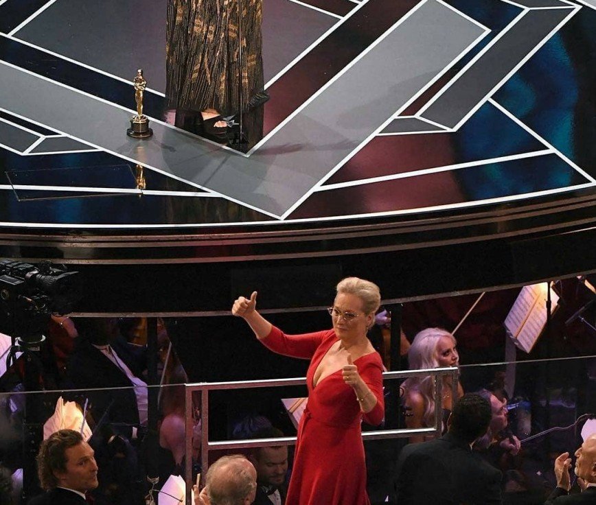 Мэрил была номинирована на «Оскар», но проиграла его своей коллеге Фрэнсис Макдорманд, что, судя по всему, не испортило ей настроения в этот вечер.