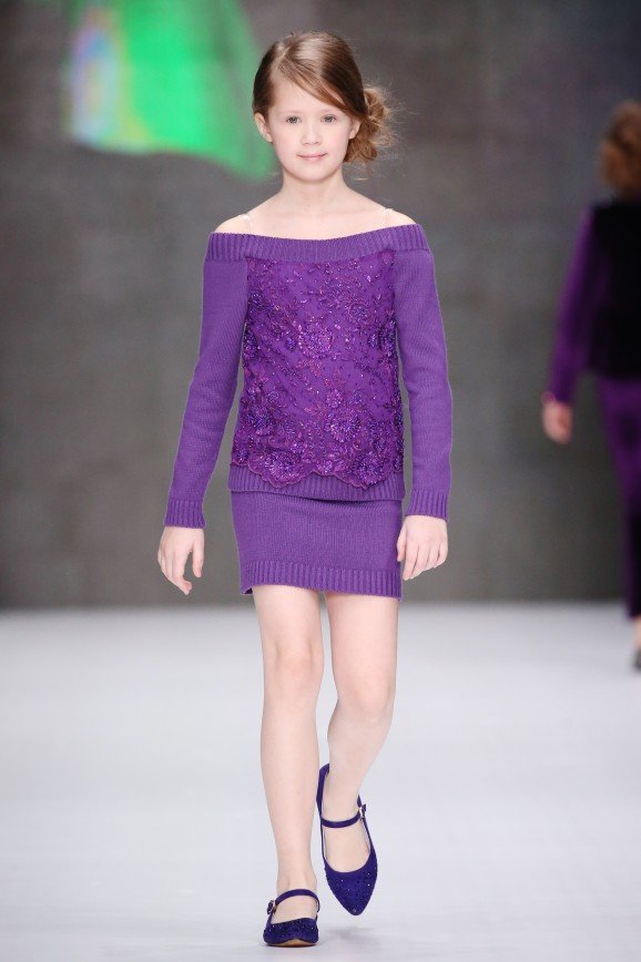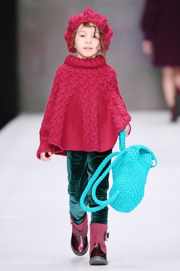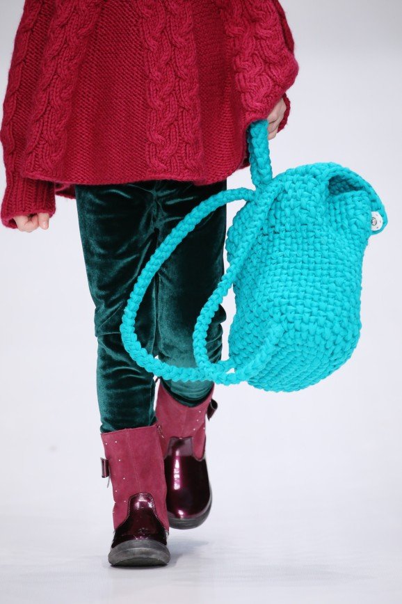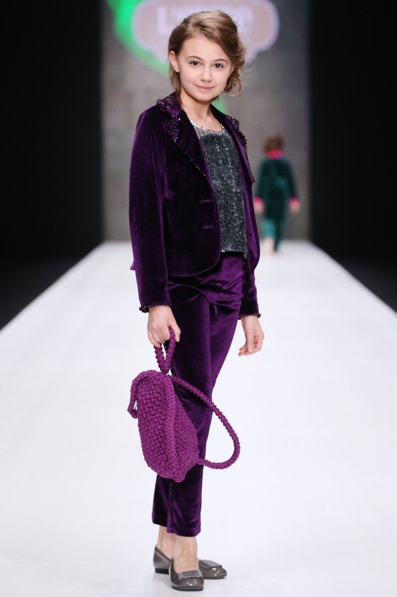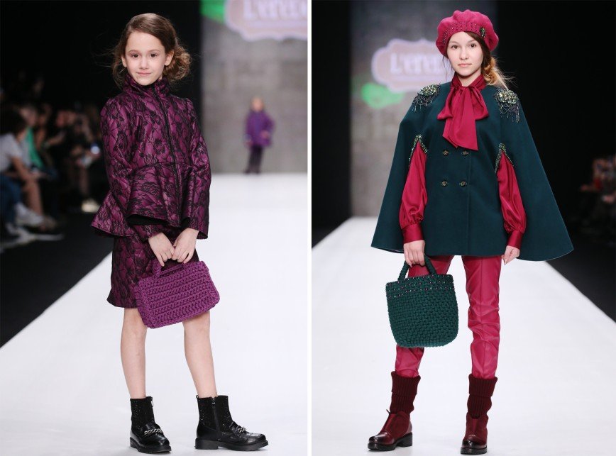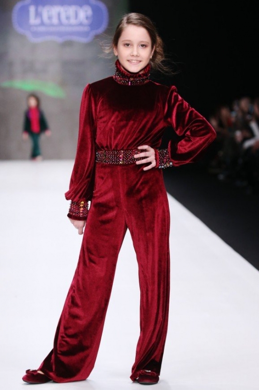 Бренд L’EREDE представил гостям новую детскую коллекцию одежды, почти идентичную взрослым. Вместо пастельных оттенков здесь доминируют яркие и насыщенные цвета, такие как фиолетовый, фуксия, ярко-зеленый и бургунди. Основными материалами коллекции выступили бархат и атлас: например, бархатный комбинезон цвета марсала, украшенный стразами, и атласная пижама с инициалами юной хозяйки. Также акцент сделан на вязаные платья с объемными рукавами, которые идут в тандеме с грубыми ботинками.