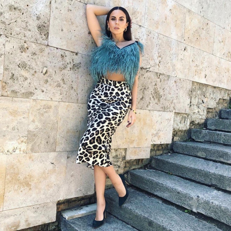Певица Настя Каменских вышла в свет в гламурном образе, состоящем из голубого топа с перьями и леопардовой юбки. Столь неожиданное сочетание поразило поклонников, которые признались, что в таком виде артистка смело может дать фору самым стильным звездам Голливуда.