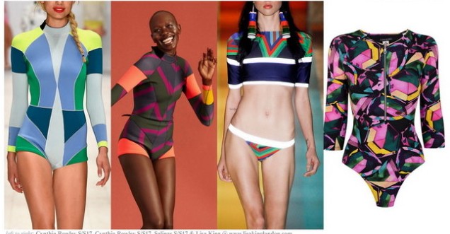 — отсутствие четких линий (отстрочки, косточки, выделенная чашка). -психоделические принты и яркие цветочные рисунки. Иногда это выражается не в самом купальном костюме, а в аксессуарах в первую очередь — парео, сумки, платки в прическу и так далее.