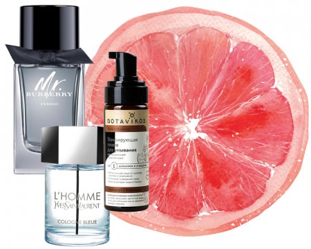 Парфюм c фиалкой и грейпфрутом Indigo, BurberryПенка для умывания с кориандром и грейпфрутом, BotavikosПарфюм Cologne Bleue с чабрецом и грейфрутом, Yves Saint Laurent