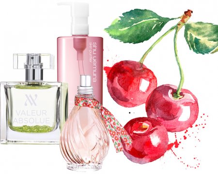 Парфюм с вишней Vitalite, Valeur AbsolueТуалетная вода с вишней Flor De Acerola, L'OccitaneГидрофильное масло с вишней Skin Purifier, Shu Uemura