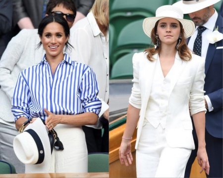 Впрочем, куда больших оваций на минувшем состязании удостоилась очаровательная актриса Эмма Уотсон, появившаяся на престижном теннисном турнире в белоснежном костюме-тройке, кюлоты которого выглядели почти идентично тем, в которых появилась Меган Маркл. Дополнила актриса свой аристократический стиль франта белой широкополой шляпой и массивными серьгами.