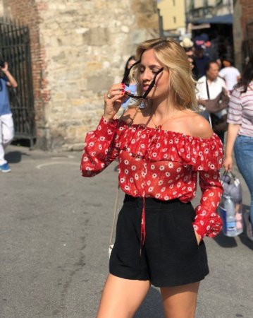 Отечественная актриса Янина Студилина не так давно стала мамой, однако проводить свой декрет в четырех стенах звезда не намерена, и со своей полуторагодовалой дочерью Янина отправилась в Италию, где с удовольствием проводит летние каникулы и погружается в культуру страны. А какой отпуск в Европе без шопинга? И как любая модница, Студилина прошлась по магазинам, где помимо всего прочего ей на глаза попалась очаровательная красная блузка в белую ромашку, и приятную обновку актриса тут же надела для фотосессии в городе Пиза у знаменитой Падающей башни.