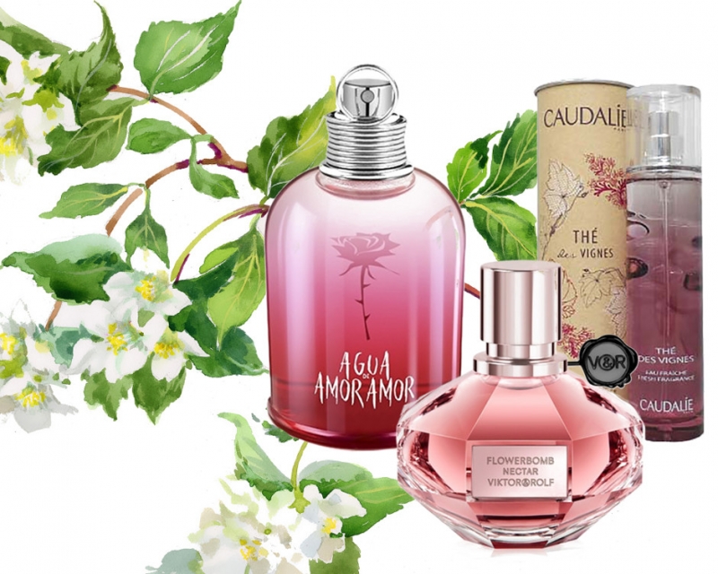 Туалетная вода Agua De Amor Amor, CacharelОсвежающая вода The Des Vines, CaudalieПарфюмерная вода Flowerbomb Nectar, Victor&Rolf