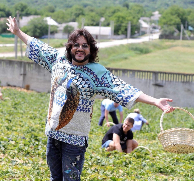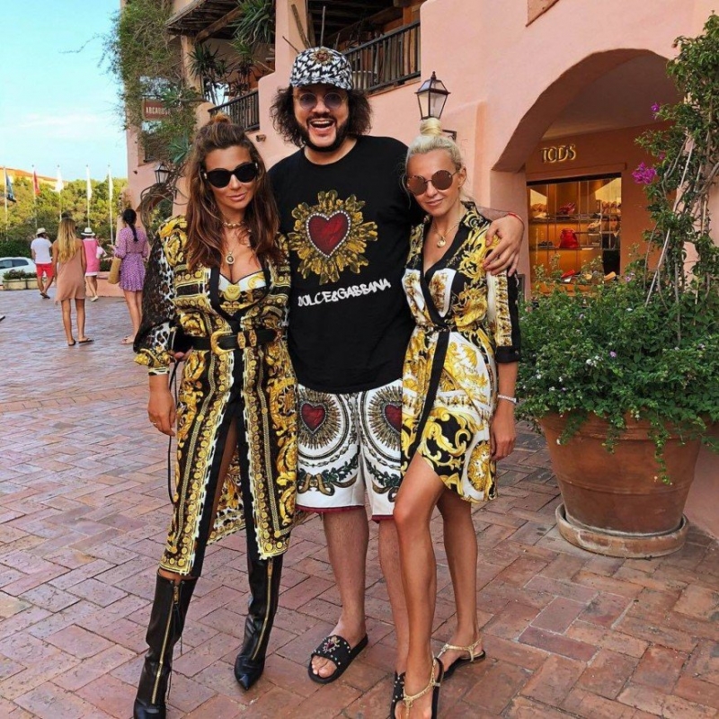 Броские наряды поп-короля Филиппа Киркорова давно уже привычны обывателям, которые только вздыхают, что взрослый и солидный мужчина испытывает особую тягу ко всему блестящему и экстравагантному. Ну а его концертные костюмы стабильно вызывают насмешки из-за обилия перьев и страз, и даже когда певец поднялся на сцену в необычном и крайне скромном по своим меркам образе, поклонники не смогли удержаться от пары-тройки колких замечаний. А потому неудивительно, что для прогулок по городу Порто-Черво артист выбрал сердца и витиеватые узоры от Dolce & Gabbana.