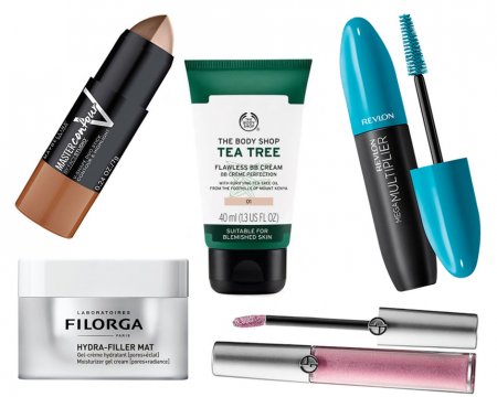 Матирующий крем Hydra-Filler Mat, FilorgaВВ-крем Tea Tree, The Body ShopТушь Mega Multiplier, RevlonКарандаш-скульптор для лица Contour&Highlight, Maybelline NYЖидкие тени для век Eye Tint, Giorgio Armani