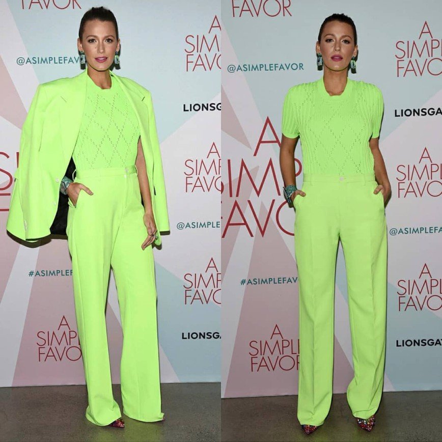 30-летняя Блейк Лайвли, сияя в ярко-зеленом костюме, появилась на премьере фильма «Простая просьба», очаровав всех своим сочным и свежим видом. Столь броский брючный костюм можно назвать смелым даже для звезды сериала «Сплетница», которая и без того никогда не отказывалась от умопомрачительных образов для выхода в свет, а потому неудивительно, что все взгляды в тот вечер были прикованы только к ней.
