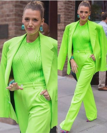 В то же время уравновесить свою феерию цвета Блейк решила легким макияжем и простой и лаконичной прической, туго собрав волосы в высокий пучок на голове.К слову, одета Блейк по последнему писку моды – неоновые цвета вновь набирают популярность и можно быть уверенным, что уже этой осенью в гардеробах всех модниц появится яркий лимонно-желтый цвет.