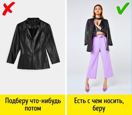 Если вы хотите раз и навсегда забыть о проблемах с вашим гардеробом, главное, что нужно сделать, — перестать выбирать отдельные вещи, а начать мыслить цельными, законченными образами, включая аксессуары. Прежде чем купить какую-то вещь, спросите себя, с чем вы будете ее носить. Если на ум пришло 3–4 варианта, с чем можно ее скомпоновать, только тогда вещь можно покупать.