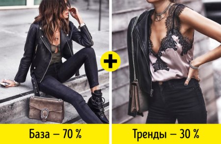 Базовые вещи — основа гардероба. Они простые, лаконичные по фасону, не выходят из моды и отлично комбинируются фактически с чем угодно. Базовые вещи должны составлять 70 % вашего гардероба, остальные 30 % — трендовые варианты. Именно добавление модных тенденций позволяет гардеробу быть актуальным и стильным. Достаточно покупать каждый сезон 2–3 трендовые вещи, чтобы ваша база заиграла новыми красками, при этом не придется тратить большие суммы на шопинг.