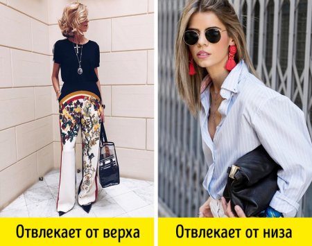 Для того чтобы скрыть какой-то недостаток своей фигуры или не самые выигрышные ее места, иногда достаточно просто перенести акцент на что-то другое, более удачное. Например, яркий принт на брюках или юбке привлечет внимание к стройным бедрам и отвлечет от слишком широких плеч, невыраженной талии. Заметное, броское ожерелье или эффектные серьги привлекут внимание к красивому лицу и отвлекут от полноватых бедер.