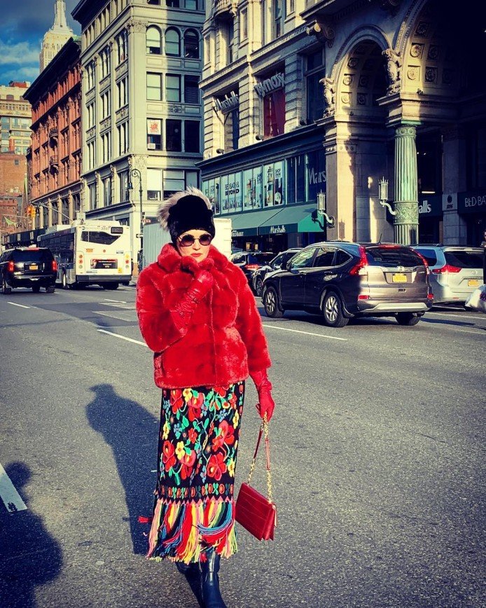 В красном полушубке по Нью-Йорку: сочный образ Анны Нетребко - «Красота»