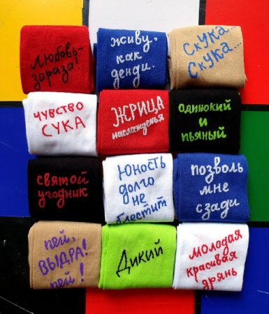Несколько месяцев сотрудники St.Friday Socks изучали в библиотеках запрещенную чувственную лирику пяти поэтов и духовно обогатились. Теперь очередь открыть прекрасный мир поэзии дошла до тех, кому эти носки предстоит носить. Найти вариант, что ярче всего живописует ваш внутренний мир, просто: коллекция состоит из 12 пар с разными цитатами.