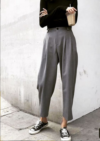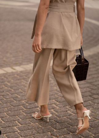 Важно выбирать актуальные модели брюк. Трендовый силуэт в тканях и оттенках, подходящих для этого направления. Сегодня силуэт приветствуется свободный: широкие длинные брюки, кюлоты или модели, зауженные книзу.