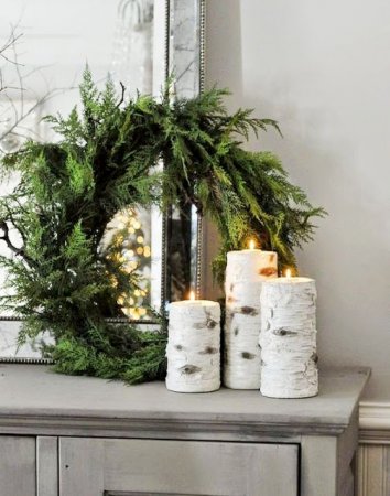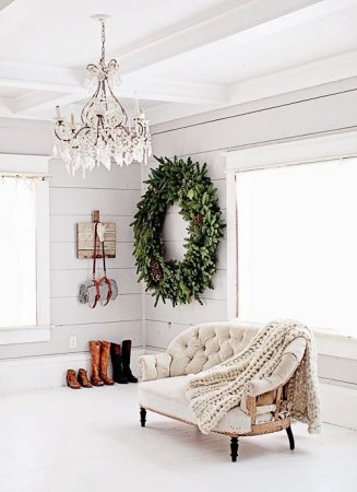 Венок – один из самых распространенных зимних и рождественских украшений, который можно использовать, как для декора внутри помещений, так и для внешнего оформления дома. Пышный венок из хвойных растений, который дополнительно можно украсить ягодами и эвкалиптовыми ветками будет отлично смотреться и принесет ощущение природы в пространство. Таким праздничным декором можно украсить дверь, окно, лестницу, стену, а также камин или выделить какую-либо часть вашего дома.