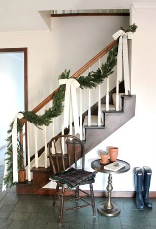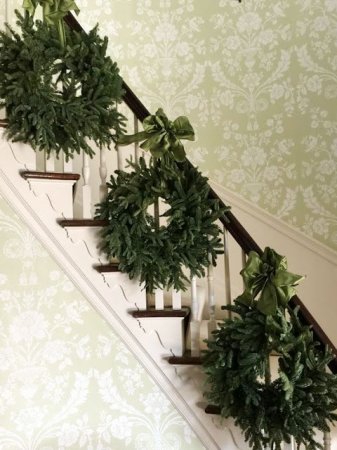 Роскошная вечнозеленая гирлянда – еще один способ, чтобы создать атмосферу зимнего праздника в вашем доме. Можно оформить гирляндой входную дверь, добавить огни, украшения и звенящие колокола, чтобы сделать переднее крыльцо нарядным. Также можно декорировать зеленой гирляндой арки в вашем доме, сделать новогоднее украшение лестницы с огоньками или звездами.