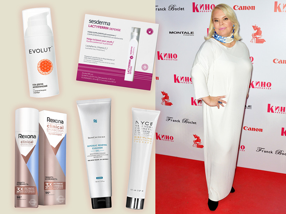Антисептический гель для рук, EvolutПищевая добавка для поддержания молодости, SesdermaОчищающий гель, SkinCeuticalsСредство для дисциплины волос, NyceСухой спрей от пота, Rexona