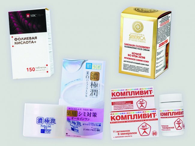Фолиевая кислота Гель для умывания, HabaladoКомлекс витаминов, КомпливитНочной крем, Natura Siberica