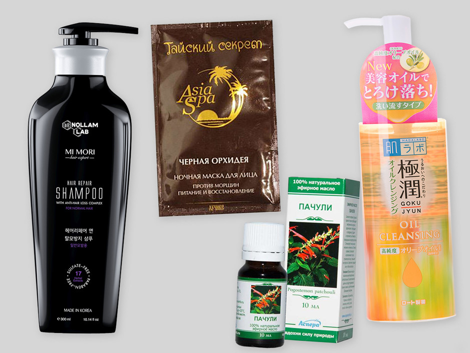 Японский шампунь, Mi MoriМаска с орхидеей, Тайский секретМасло для умывания, HabaladoМасло пачули