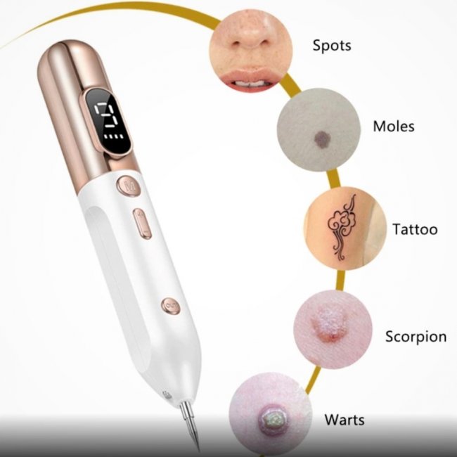 Производитель обещает, что такой ручкой можно осветлить веснушки и пигментные пятна, а также удалить бородавки, папилломы и даже татуировки. Имеет 9 режимов работы. Работает от USB. Мощность: 4 Вт. Товар заказали более 2 тысяч раз. Сейчас он продается со скидкой 43%.