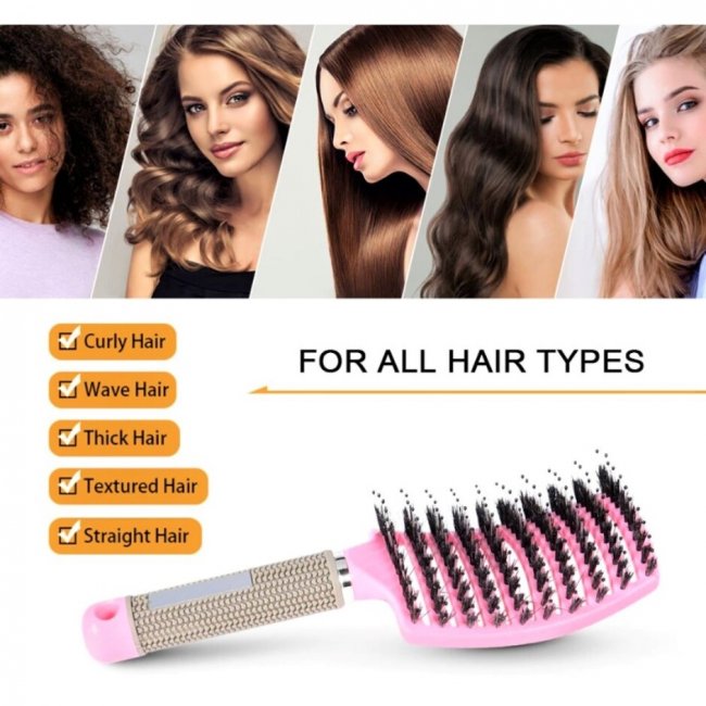 Эта расческа с нейлоновой щетиной мягко распутает волосы – и густые кудрявые, и тонкие детские. Круглые зубчики хорошо массируют кожу головы и улучшают кровообращение, стимулируя рост волос. Благодаря удачной конструкции и прорезиненной ручке расческу удобно держать в руке. Товар заказали более 7 тысяч раз. Новым пользователям она доступна со скидкой 35%.