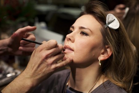 Ну а далее наступила очередь мейкапа. Визажист салона Владимир Карпов выровнял тон личика, выделил брови и сделал легкий дневной мейкап глаз: «Подводка вдоль полосы роста нижних ресниц здорово старит и восоздает под очами эффект синяков и мешков, — объяснил Владимир. — Чтобы недопустить этого, постоянно делайте упор на верхнем веке. Выбирайте золотистые, розовато-лиловые, также серо-голубые тени — они непревзойденно смотрятся на всех и подсобляют создать образ великолепной дамы!»