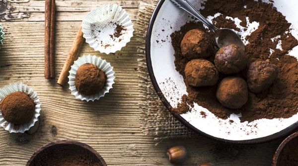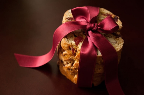 Корица, кайенский перец, миндальный экстракт, ром или бурбон — по желаниюКак готовить:Кусочки шоколада бросьте в большую кастрюлю. В отдельном ковшике подогрейте сливки и масло, пока масло не растает, затем снимите с огня и вылейте на шоколад. Хорошенько перемешайте. Добавьте корицу, перец и миндальный экстракт, если хотите, или столовую ложку крепкого ароматного алкоголя — для новых оттенков вкуса.Впрочем, и без добавок трюфели необычайно хороши. Готовую смесь остудите и уберите в холодильник как минимум на 4 часа.Застывшую массу извлеките из холодильника, скатайте в шарики при помощи ложки для мороженого, обваляйте в какао и выложите на лист пергаментной бумаги для выпечки. Имейте в виду, что обваливать шарик трюфеля нужно сразу же, не дожидаясь, пока он растает.Бискотти с клюквой и фисташкамиИнгредиенты:Сахар — 135 г