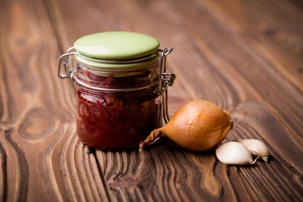 Яичный желток — 1 шт.Как готовить:Положите цедру лимона и сок, сахар и масло в огнеупорную миску, поместите ее в кастрюлю с горячей водой и поставьте на огонь: вода должна слабо кипеть, а дно миски не должно ее касаться. Пока масло тает, не забывайте помешивать смесь.Яйца и желток аккуратно взбейте и введите в лимонную массу. Взбивайте венчиком или вилкой до гомогенности в течение 10–13 минут — смесь должна стать густой, кремовой. Снимите лимонный крем (он же курд) с огня и отставьте остывать. Время от времени перемешивайте. Когда он полностью остынет, разлейте его по стерилизованным банкам. Держите в холодильнике.Лимонный крем может быть прекрасным дополнением к оладьям, блинам и сырникам, его едят с печеньем и мажут на тосты.Известны случаи, когда банка лимонного курда опустошалась за день, потому что, если начать его есть ложкой, очень сложно потом остановиться.Луковый мармеладИнгредиенты:Репчатый лук, красный или желтый — 2 кг