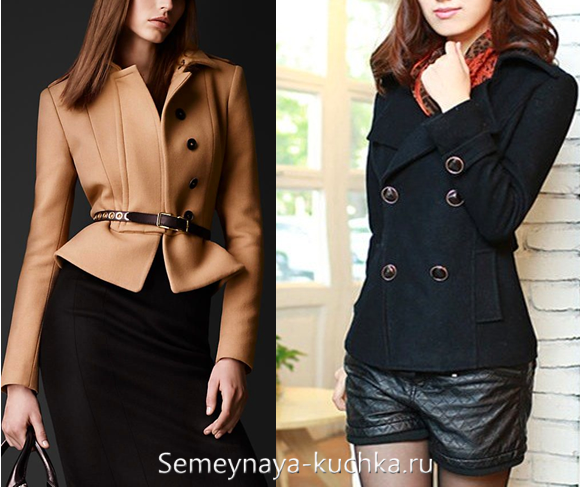 Если сравнивать пальто с жакетом — то это вполне может быть пальто, похожее на мужской пиджак или овального силуэта. Такое пальто, как на картинке может быть и чуть длиннее, и чуть короче. В данном случае это не критично