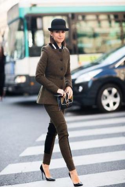 Единственная узкая модель брюк, которая успешно сочетается с подобным укороченным верхом — брюки, которые в той или иной мере обыгрывают идею жокейского костюма.