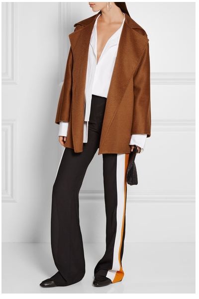 Если вам все же хочется сочетать такое пальто с брюками — то тут важна ширина. Чем свободнее будут брюки — тем более стильно все это будет выглядеть.
