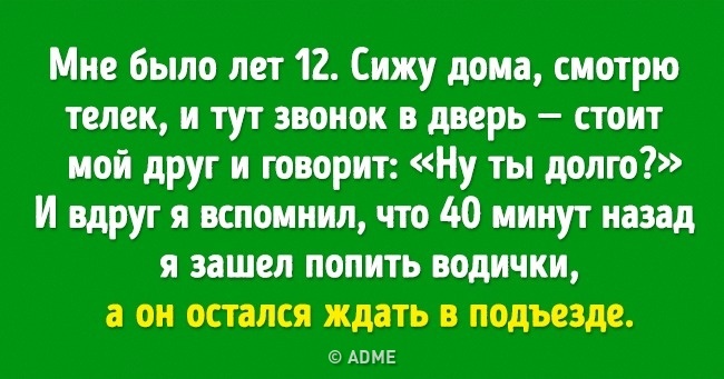 Дружба должна быть в основе любых отношений. Потому что все радости жизни созданы, чтобы ими делиться с теми, кто любит и понимает нас. 13 историй о том, как здорово иметь отличных друзей. Берегите их. В студенческие годы мы, 3 парня, в электричке познакомились с девушкой. Прощаясь, предложили ей встретиться еще. Мне и другу она отказала, а с третьим стала встречаться. Через год они расстались, а мы спросили его: «Почему она тебя тогда выбрала?» Он рассмеялся и говорит: «Да пока вы в кассу метро стояли, я сказал, что вы оба женатые, просто кольца не носите». В старших классах активно занимался боксом на протяжении 7 лет. В самом обычном зале на городской окраине, где были местные ребята с нашего двора и школы, все очень близко дружили. Как-то с тренером решили летом съездить на недельку в Грузию, на спортивно-оздоровительный отдых. Ребята за полгода устроились на разные подработки. Пришло время поездки, тренер собирает ребят и говорит, что один из нас, Саша, не поедет, потому что у него мама очень серьезно заболела, все его накопления на лечение уйдут. Тут самый старший из нас сказал, что тоже не поедет, Сашке явно нужнее деньги, он отдаст их ему. И 6 здоровых лбов, которые пахали полгода ради того, чтобы пару недель в Грузии отдохнуть, единогласно поддержали эту мысль. Довольно приличную сумму тем же вечером принесли отцу Саши. Работаю в школе. Есть у нас мальчик — с ногой у него проблемы, ходит на костылях. Мама его добивалась, чтобы учился он в обычном классе с обычными ребятами. Мальчишка веселый, компанейский, самостоятельный, одноклассники ему, конечно, помогают. Теперь учится в средней школе. Пристал к нему один хулиган-девятиклассник: отобрал костыль, смеялся над его сестрой и над ним. Но узнали мы об этом позже, когда начали разбираться, почему шестиклашки подрались с девятиклассником. У папиного одноклассника в детстве жил необычный питомец — мартышка Яша. Папа-моряк привез сыну такой подарок с рейса. Был Яша тем еще пакостником: не любил отпускать хозяина в школу, поэтому измазывался во всем, что придется — варенье, мед, сметана, — и начинал тереться о шторы и мебель. Мальчику приходилось все это срочно убирать, и он часто опаздывал на уроки. И не было в мире никого счастливее, чем маленький Яша, который услышал, что его друг возвращается из школы. Как-то ночью, возвращаясь с небольшого путешествия на поезде, мы с девушкой попросили друга забрать нас на машине с вокзала, ибо время позднее и ничего не ходит. Машина друга была в ремонте, но он пообещал одолжить другую у третьего лица. Третье лицо в это время уже крепко спало, заранее его никто не предупредил. Но уже ведь было обещано. В общем, встретил он нас. Минут 40 шел до поезда и встретил. Пешком. Зато обещание выполнил. Обратно шли уже втроем. Я получил легкий химический ожог подмышек от некачественного дезодоранта. Ощущение не из приятных, поэтому, чтобы дать себе передышку, периодически поднимаю руки вверх и некоторое время так хожу или сижу, по возможности маскирую это под потягушки. Но мои друзья-то уже в курсе. В итоге каждый раз, когда я поднимаю руки, они орут мне «Восславь солнце!» Настоящие друзья, люблю их. Я живу в Балтиморе, в доме американца чилийского рода. Он говорит на английском и на испанском. Ему 68. По дороге, когда он отвозит меня по делам, рассказывает о том, что считает интересны