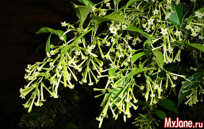 Еще один тропический «пришелец» в наших цветниках – цеструм ноктюрнум, «ночной жасмин», «королева ночи». Этот вечнозеленый кустарник также относится к семейству Пасленовых (Solanaceae). Мелкие белые цветы растения, собранные в кистевидные соцветия, раскрываются в ночное время и источают неповторимый аромат, это одно из самых душистых растений в мире.