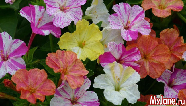 И еще одно достаточно простое в уходе, но почему-то часто обделенное вниманием любителей цветов растение. Это мирабилис, «ночная красавица», травянистый полукустарник семейства Никтагиновые (Nyctaginaceae), тропическое многолетнее растение, которое выращивают у нас, как однолетнее. Разнообразие окраски цветов мирабилиса просто восхищает, причем цветы разных оттенков могут расти и на одном кустике: