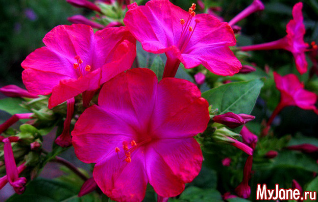 Распускаться они начинают в послеобеденное время и вянут через несколько часов, однако на смену увядшим цветам тут же раскрываются новые – так продолжается до рассвета. Цветы мирабилиса имеют очень приятный запах, период цветения длится с мая и до первых заморозков глубокой осенью.