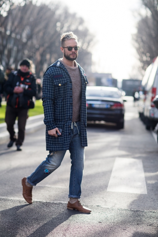 Глядя на героев стритстайла миланской Недели мужской моды, кажется, что на мужчинах в принципе любая одежда смотрится более выигрышно, чем на женщинах. Главной приметой модников в этом сезоне стали тонкие свитеры с высоким горлом, которые городские денди сочетали не только с пиджаком, но и с тренчем, пальто, жилетом, а порой даже с косухой, — словом, старые добрые водолазки получили новую жизнь. Уличные фотографы не успевали спускать затворы камер, а резиденты fashion week пускали в ход весь свой щегольский арсенал. В целом же уличный стиль Милана — это все еще совершенная эклектика (микс расслабленной классики и подчеркнуто небрежных сложносочиненных образов). Рассматриваем лучшие аутфиты в объективах стритфотографов Недели мужской моды в Милане сезона осень–зима 2017/2018.