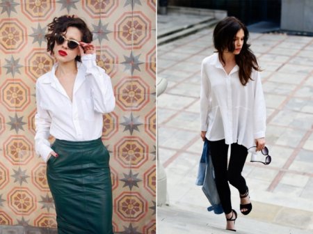 Белая или пастельных тонов мужская рубашка смотрится очень женственно и создает непринужденный богемный образ. Рубашку можно заправить, а пару верхних пуговиц расстегнуть. Отлично сочетается с обувью на высоком каблуке и любыми аксессуарами.