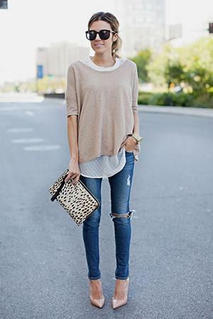 Яркий пример добавления тщательного в небрежное — ставшее уже традиционным сочетание рваных джинсов с классическими лодочками.