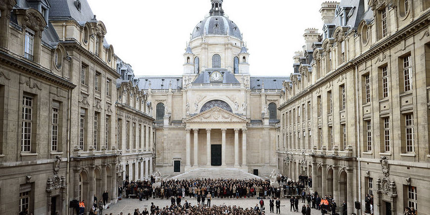 Париж-1 Пантеон-Сорбонна — один из 13 университетов, образованных на месте старой Сорбонны после студенческих волнений 1968 года. Забавно, что все университетские здания, построенные после этого года, сконструированы так, чтобы учащимся было сложно организовать забастовку. Например, прилегающие к университетам территории заставлены большими плитами разного уровня, которые образуют своего рода лестницу, ведущую вниз к входу, а внутри здания расположены очень узкие коридоры, чтобы было неудобно общаться большими группами.
